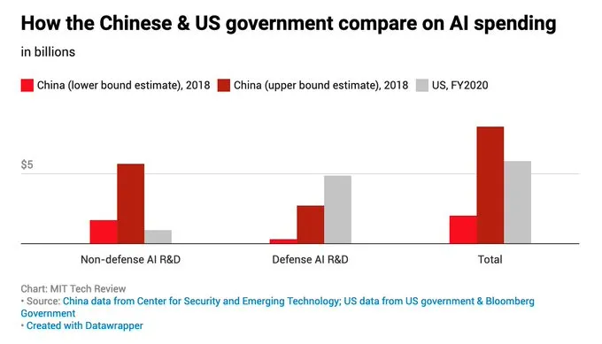 How the Chinese & US government compare on AI spending [Source]